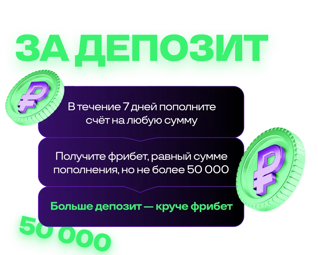5.2. При выполнении условий Участнику Акции зачисляется фрибет в размере 100% от суммы ставки, но не более 50 000 руб.